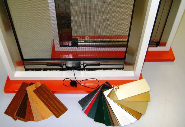 con cassonetto in alluminio anodizzato di vari colori e rete in fibre di vetro in nylon